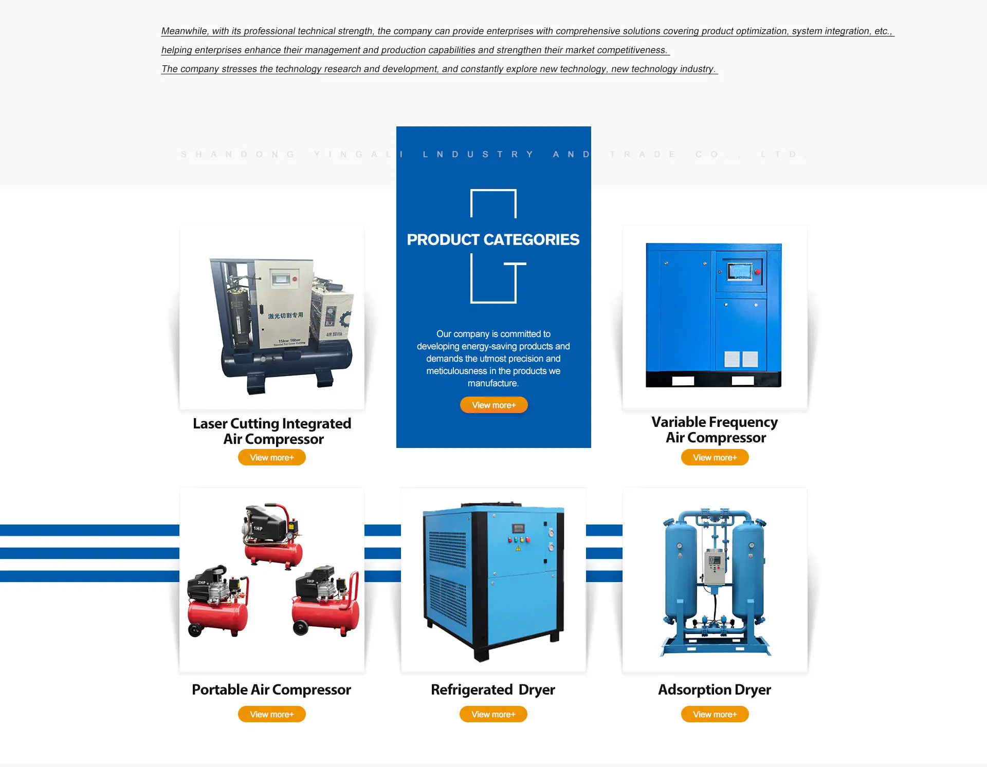 Productos principales:Compresor de aire, piezas de compresor de aire, hardware, secador de refrigeración, máquina seca